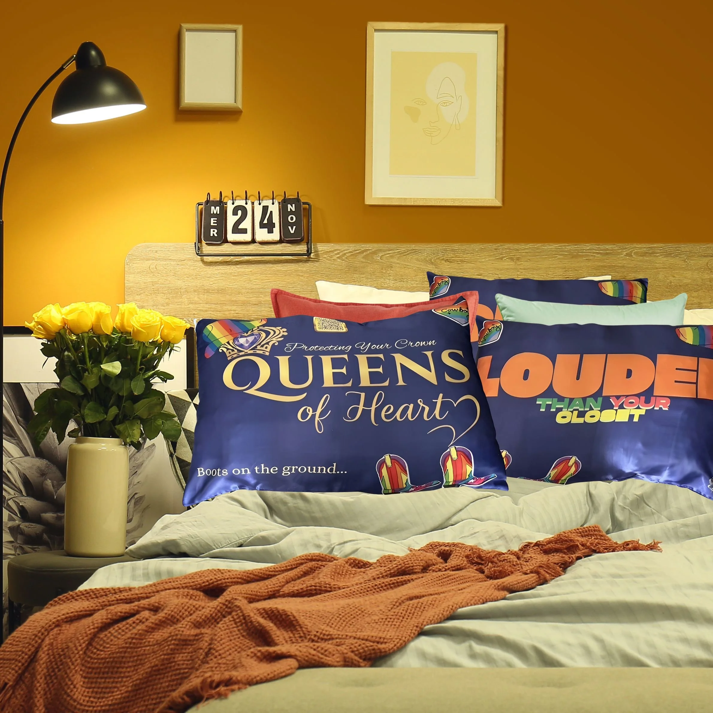 Introducing the 'Big Enough' pillowcase, a striking piece from our exclusive PRIDE Collection! This fantastic item features a bold custom design and a playful message on the back: 'Big enough for a King but made for a...' while the front pays tribute to the royal Queens Of Heart. Crafted from our high-quality fabric blend, this pillowcase helps protect your hair and skin during sleep and withstands daily wear and tear. It's the ideal accessory for those who celebrate their individuality and exude confidence. Designed with you in mind... Protecting Your Crown!