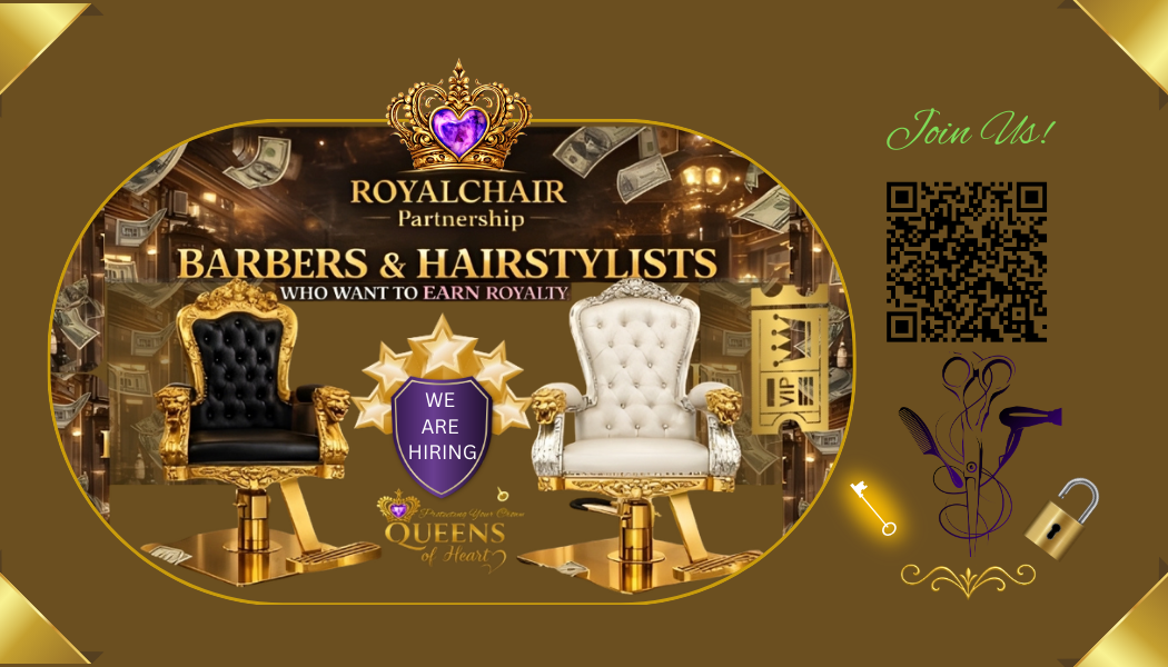 The Royal Chair Partnership is an independent, contractor-commission-based earning opportunity reserved for both licensed and non-licensed hair professionals who uphold high standards of professionalism and client trust.